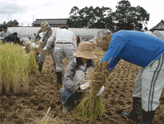 | 春の田植え、秋の稲刈り等の農作業体験交流に参加する組合員も、リピーターから赤ちゃん連れのホヤ |