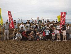 | 就学児や小学生は、おとなと同じように農作業体験で汗 |