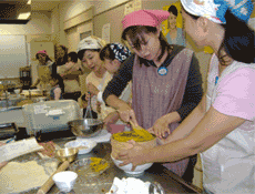 ▲季節にあったパンプキンパイ作り