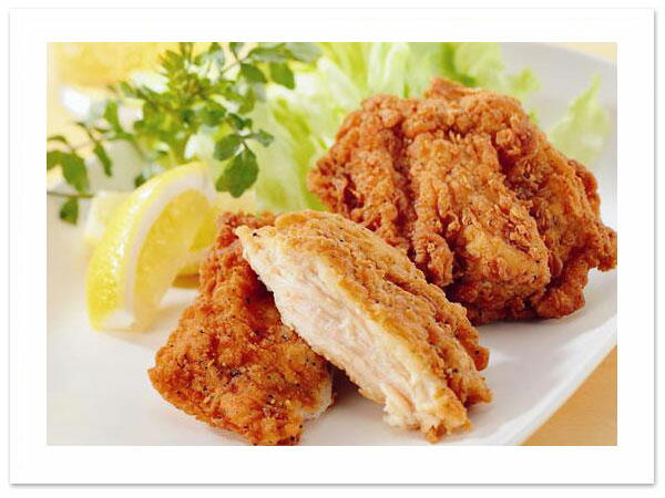 産直産地「米沢郷」のムネ肉を使ったフライドチキンです。下味に漬け込んで熟成し、ローズマリ